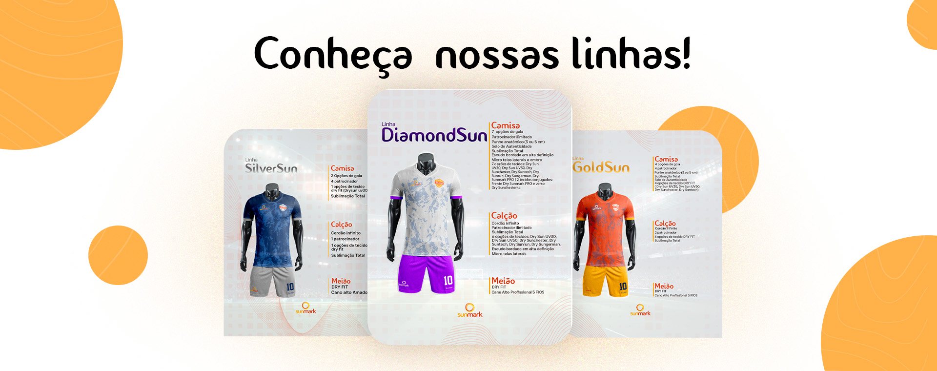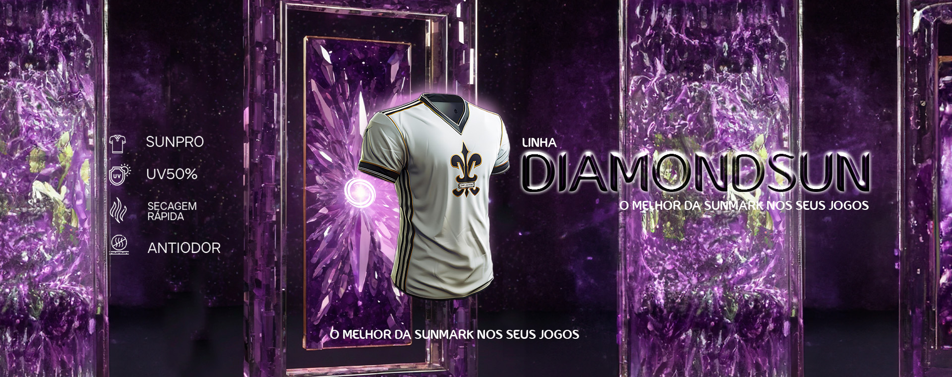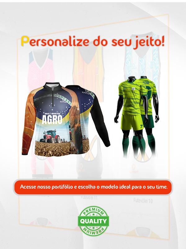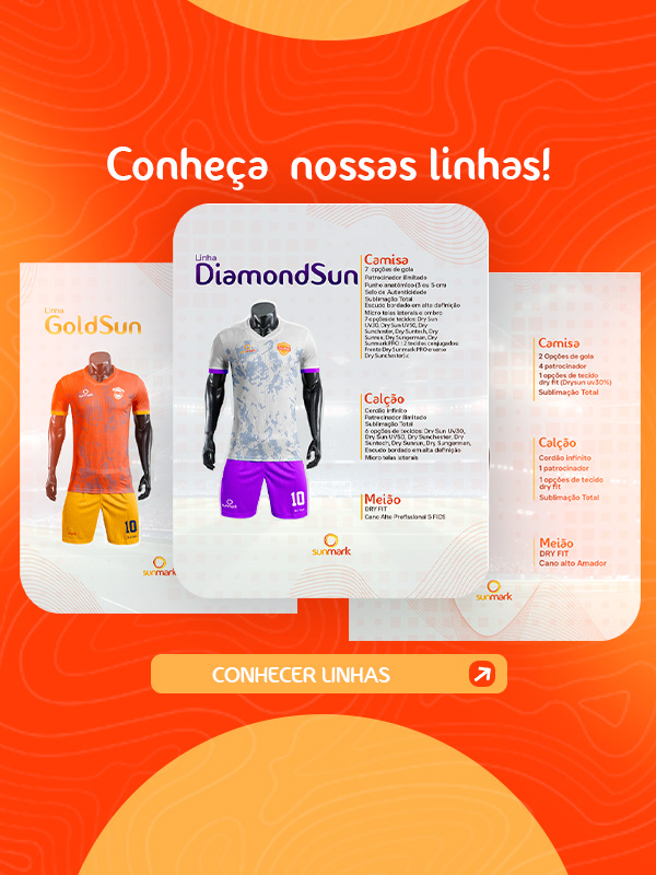 Os uniformes da linha DiamondSun oferecem personalização incomparável, com opções como tecido em alto relevo e bordado em 3D. Com até 7 modelos de gola e espaços ilimitados para patrocinadores, cada peça é uma expressão única da identidade da sua equipe. Além disso, garantem durabilidade e conforto, sendo a escolha definitiva para quem busca estilo e desempenho superiores.